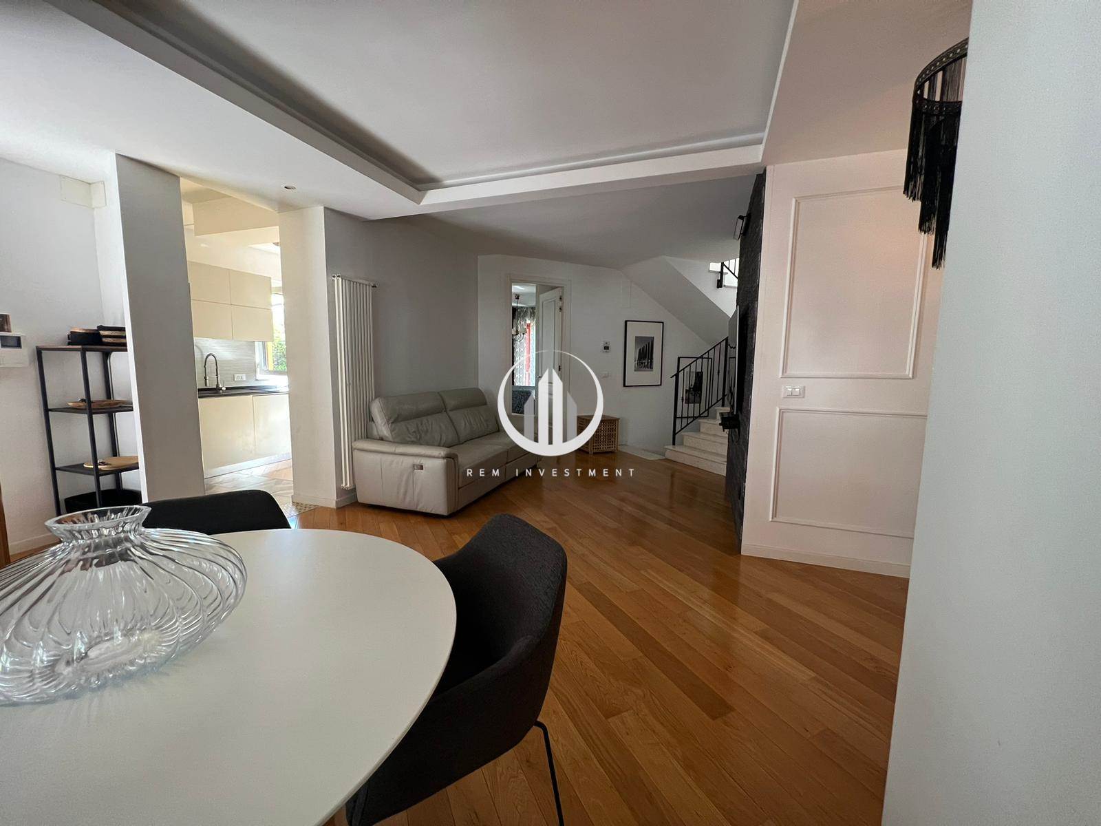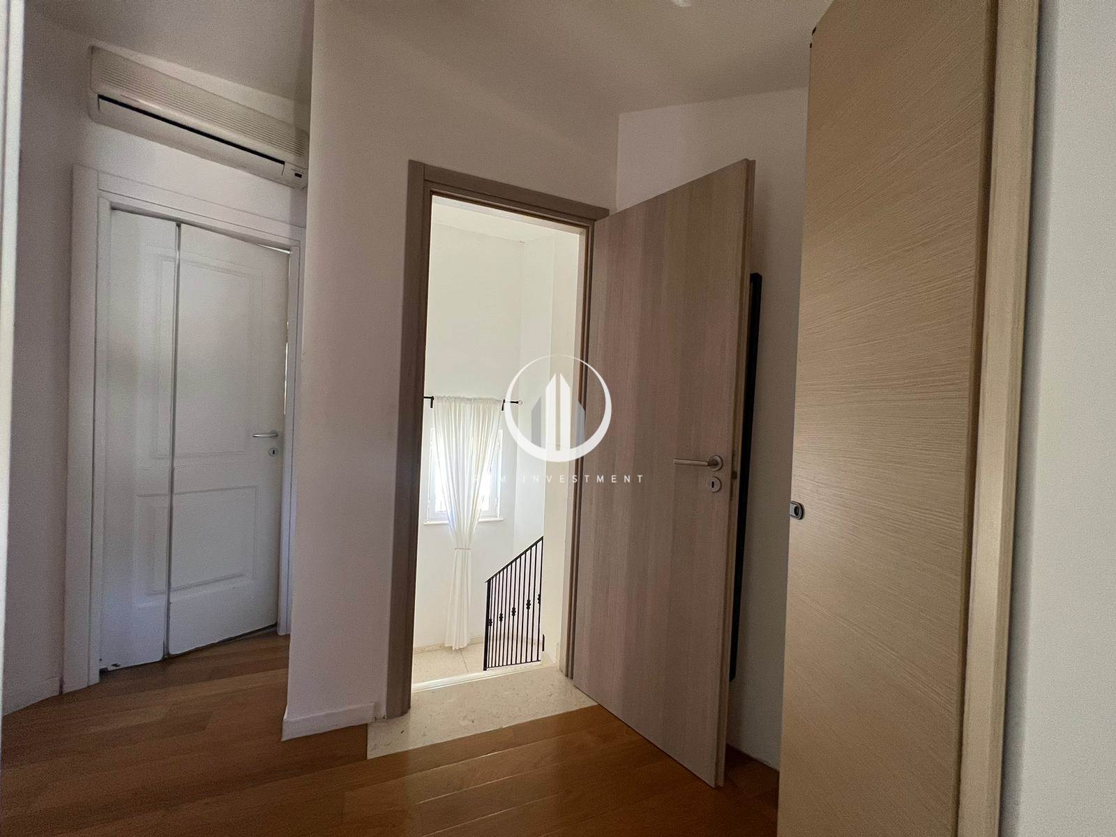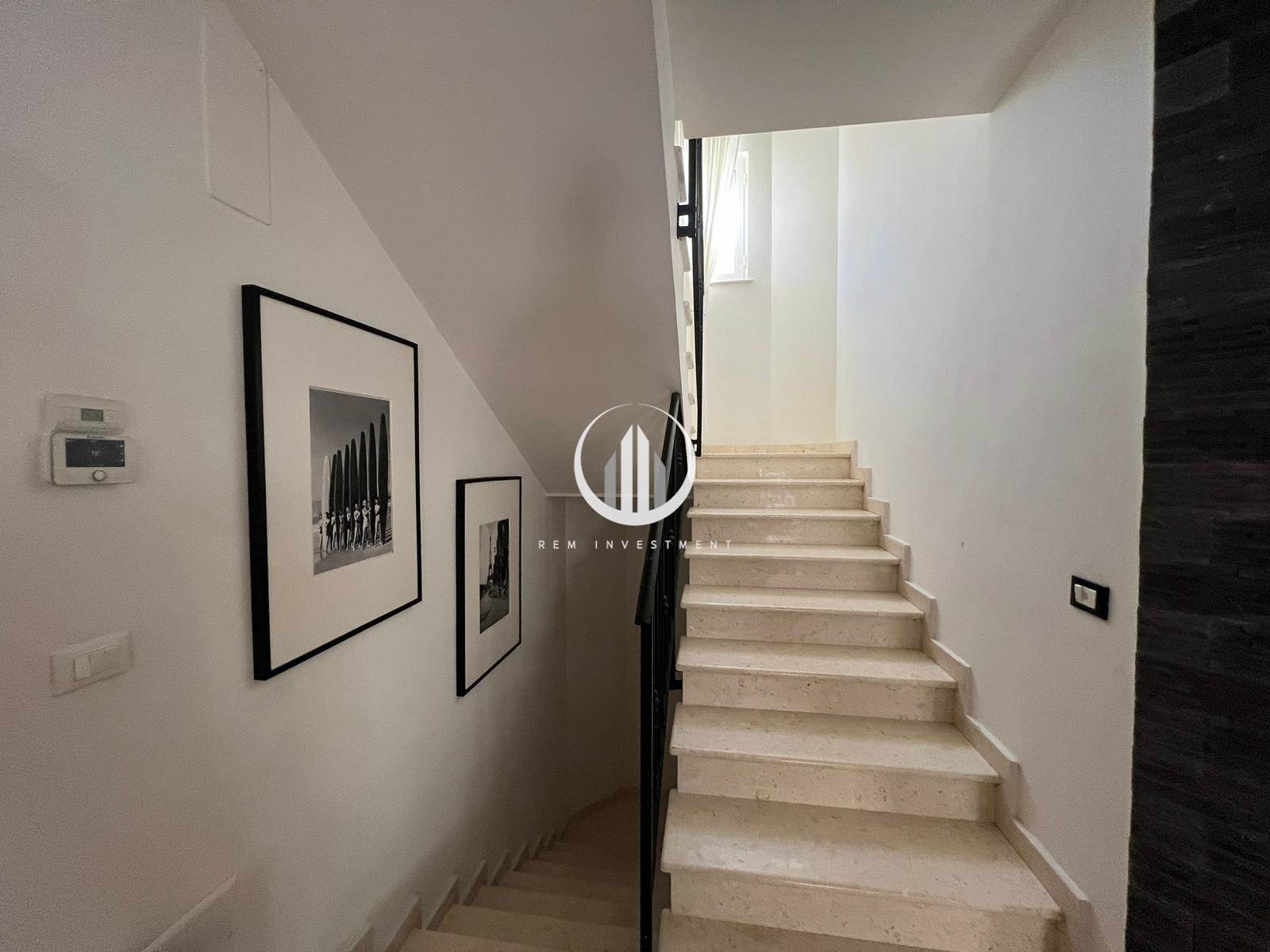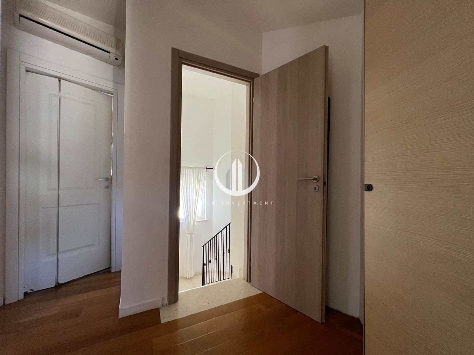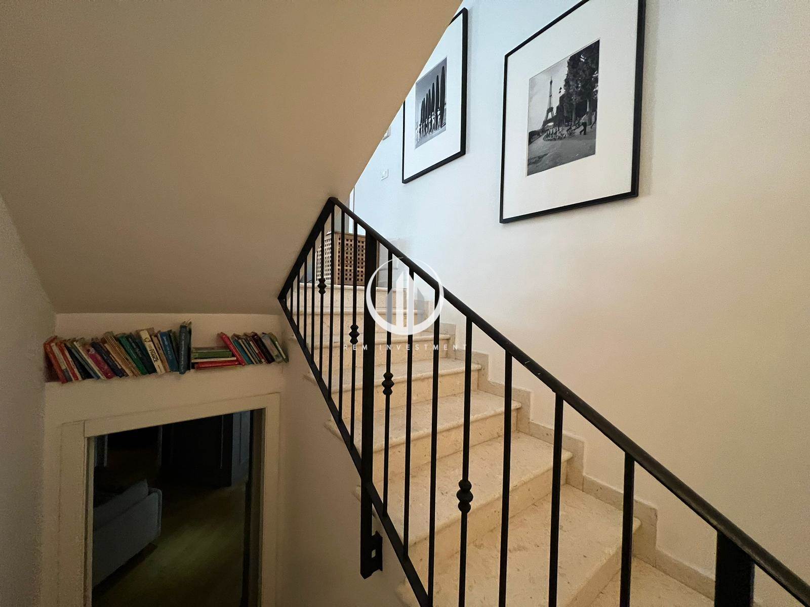 Al piano superiore, due camere da letto accoglienti, una delle quali con un delizioso terrazzino privato, offrono un rifugio tranquillo. La cabina armadio aggiunge un tocco di praticità e stile.