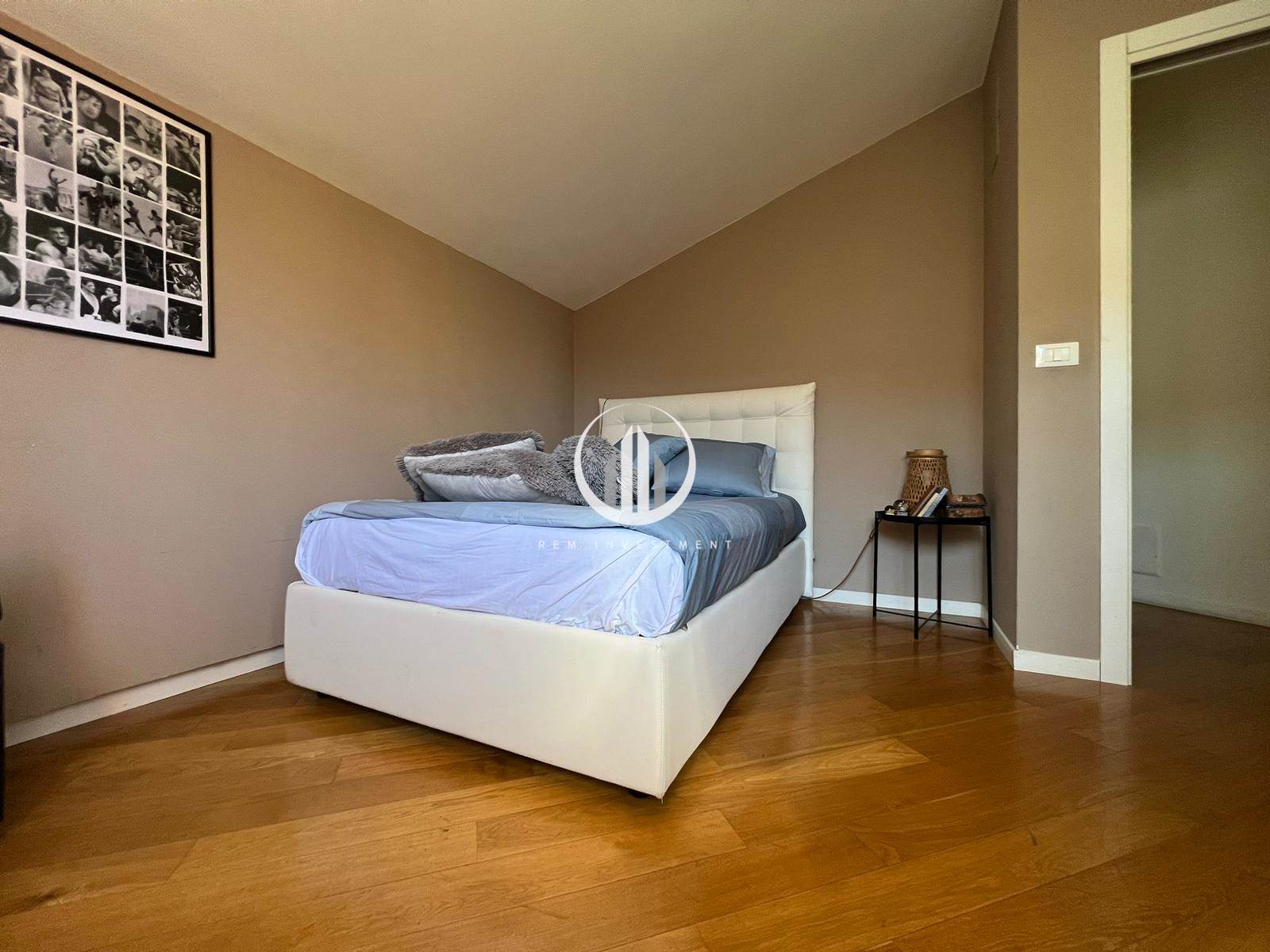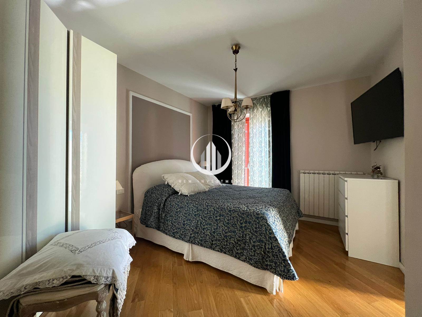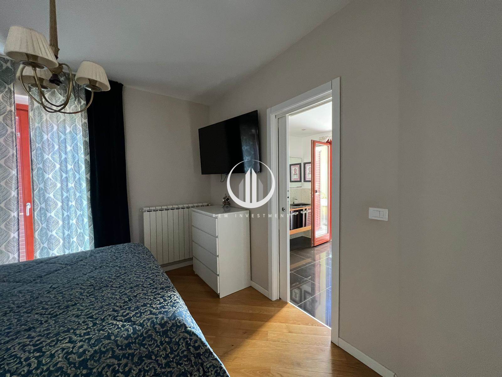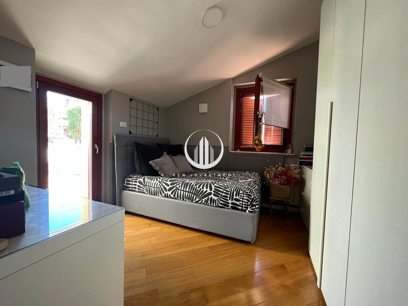 Al piano superiore, due camere da letto accoglienti, una delle quali con un delizioso terrazzino privato, offrono un rifugio tranquillo. La cabina armadio aggiunge un tocco di praticità e stile.
