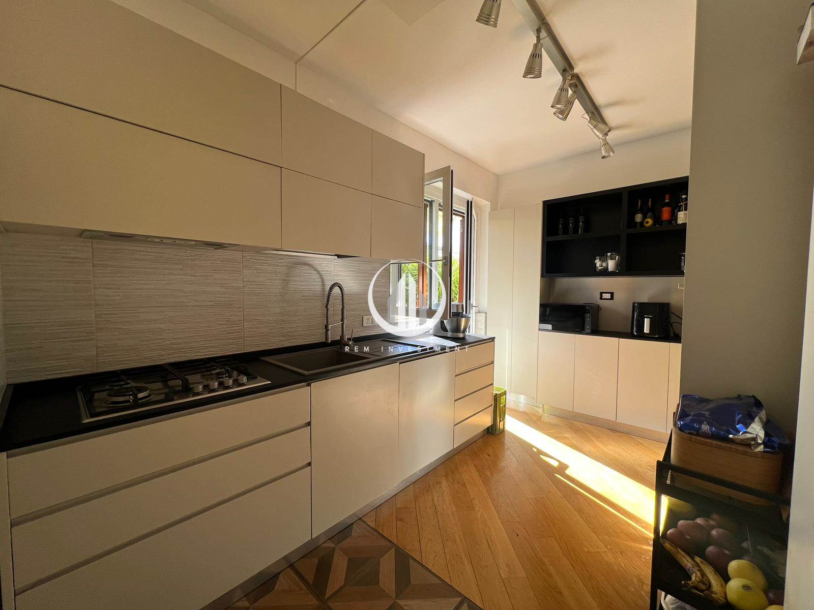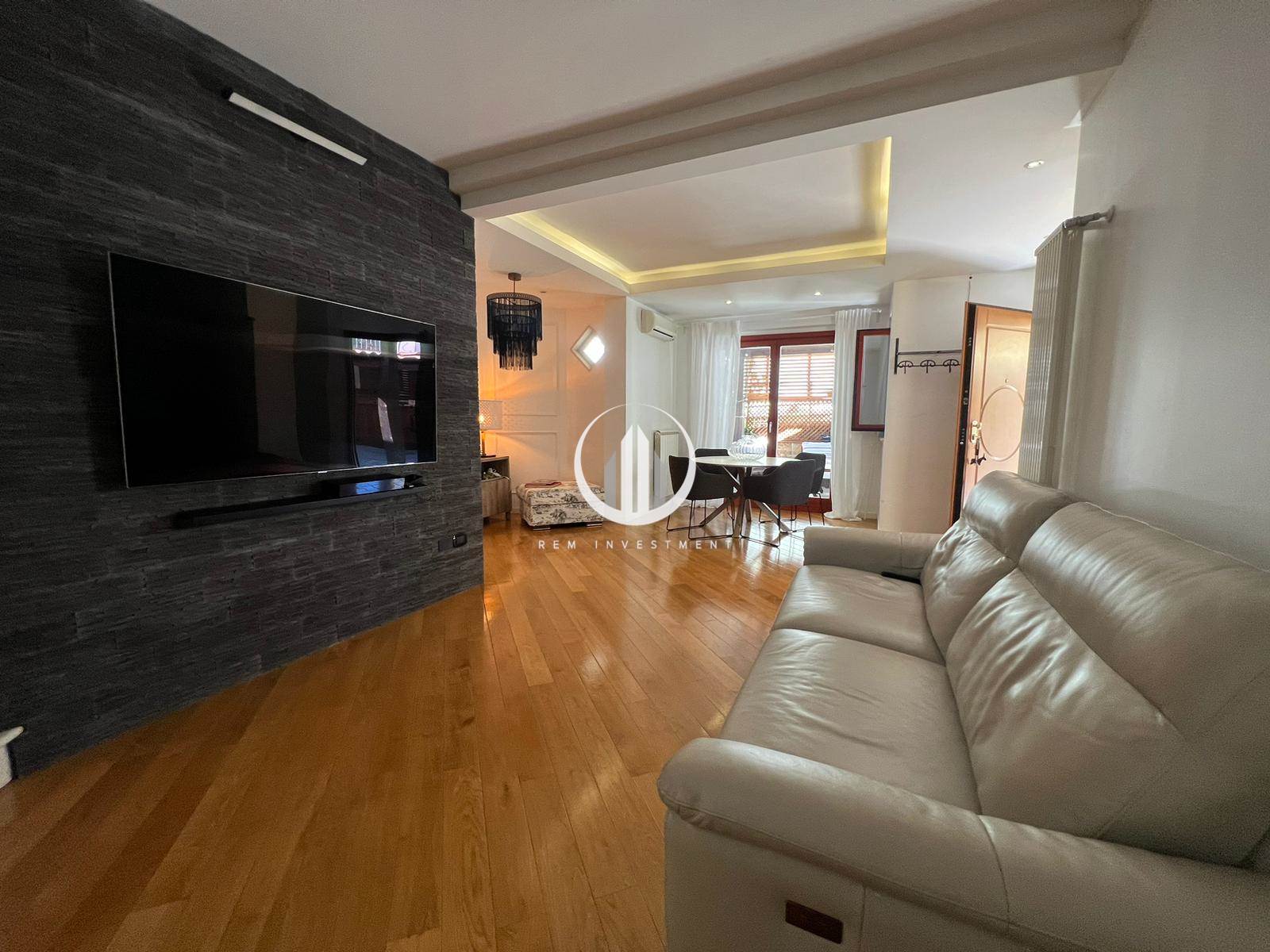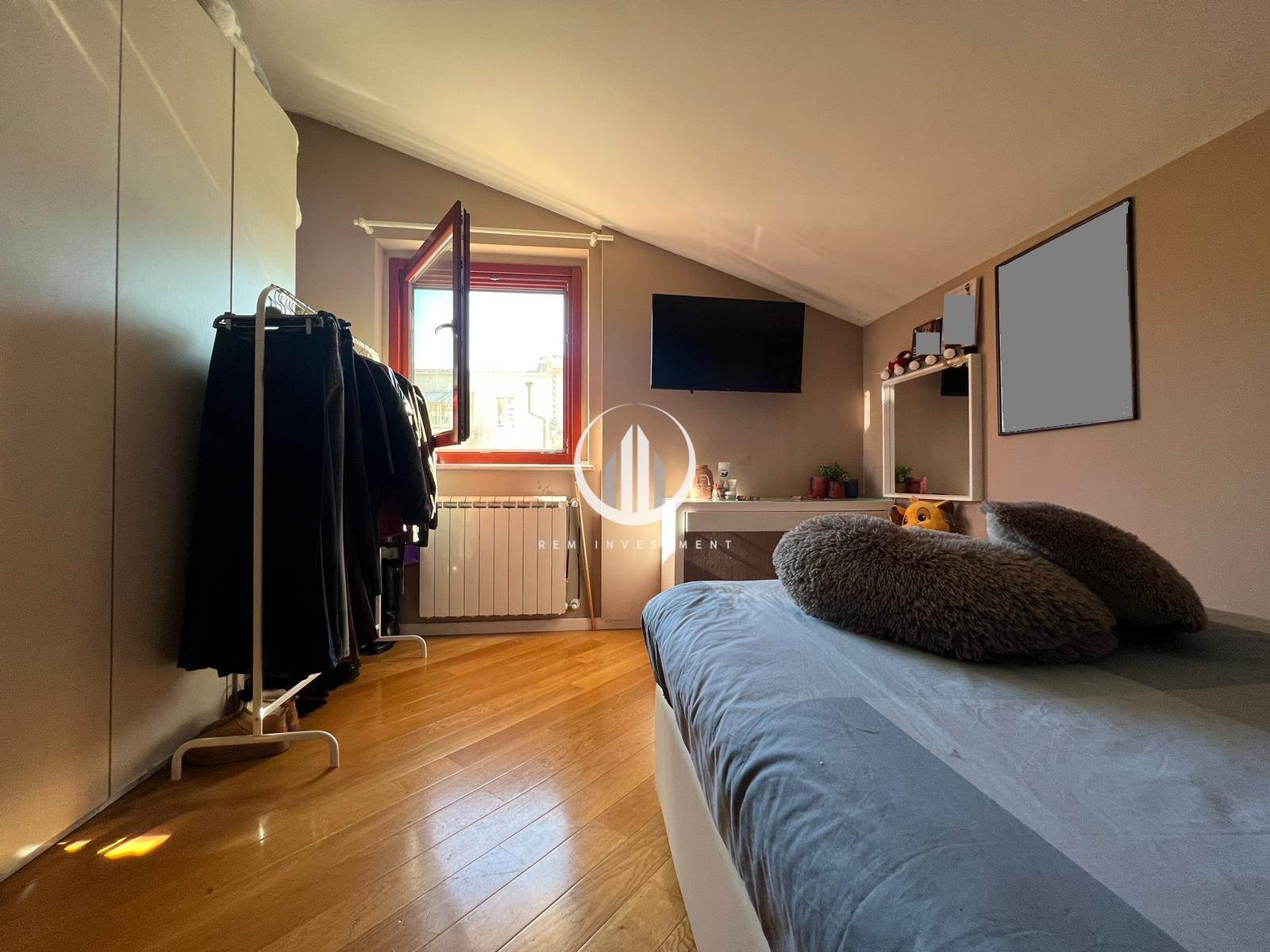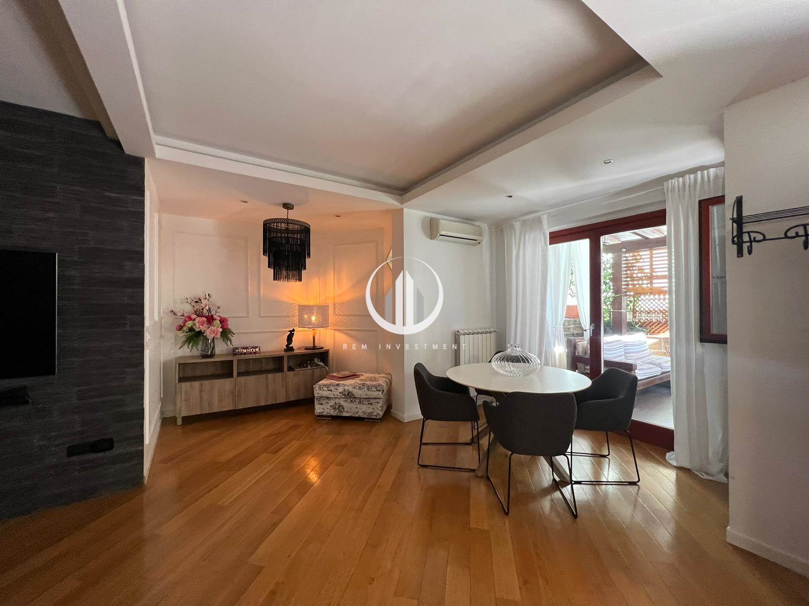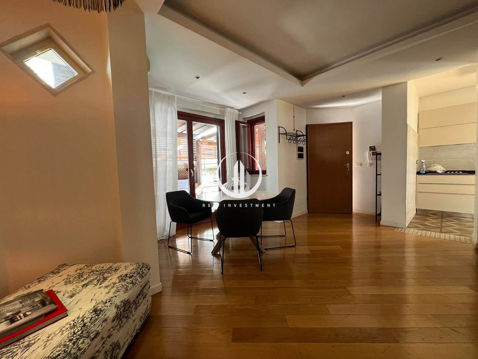Al piano superiore, due camere da letto accoglienti, una delle quali con un delizioso terrazzino privato, offrono un rifugio tranquillo. La cabina armadio aggiunge un tocco di praticità e stile.